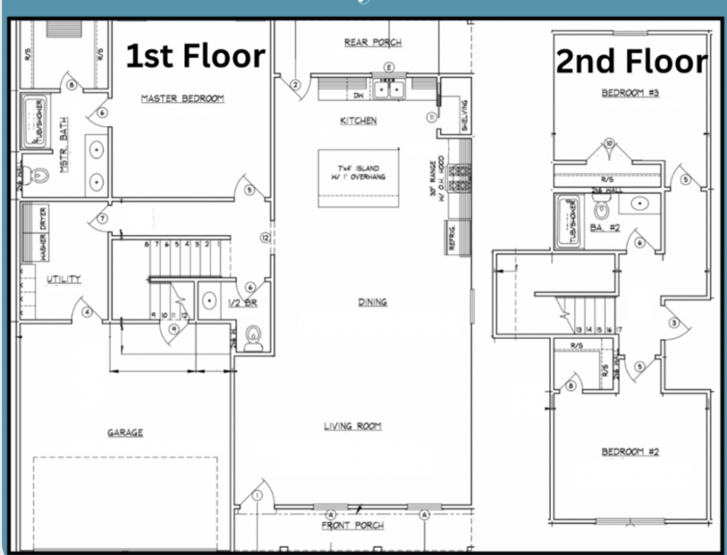 The Lily is a two-story, 3 bedroom 2.5 bathroom plan with welcoming front and back porches and an inviting open living area. The kitchen features a large island and is open to the dining room and living room. The main bedroom suite has windows overlooking the backyard, an ensuite bath with double vanities, and a walk-in closet. Bedrooms 2 and 3 are located upstairs and share a bath. There is a centrally located half bath – perfect for guests – and a large utility room located right off of the 2-car garage.